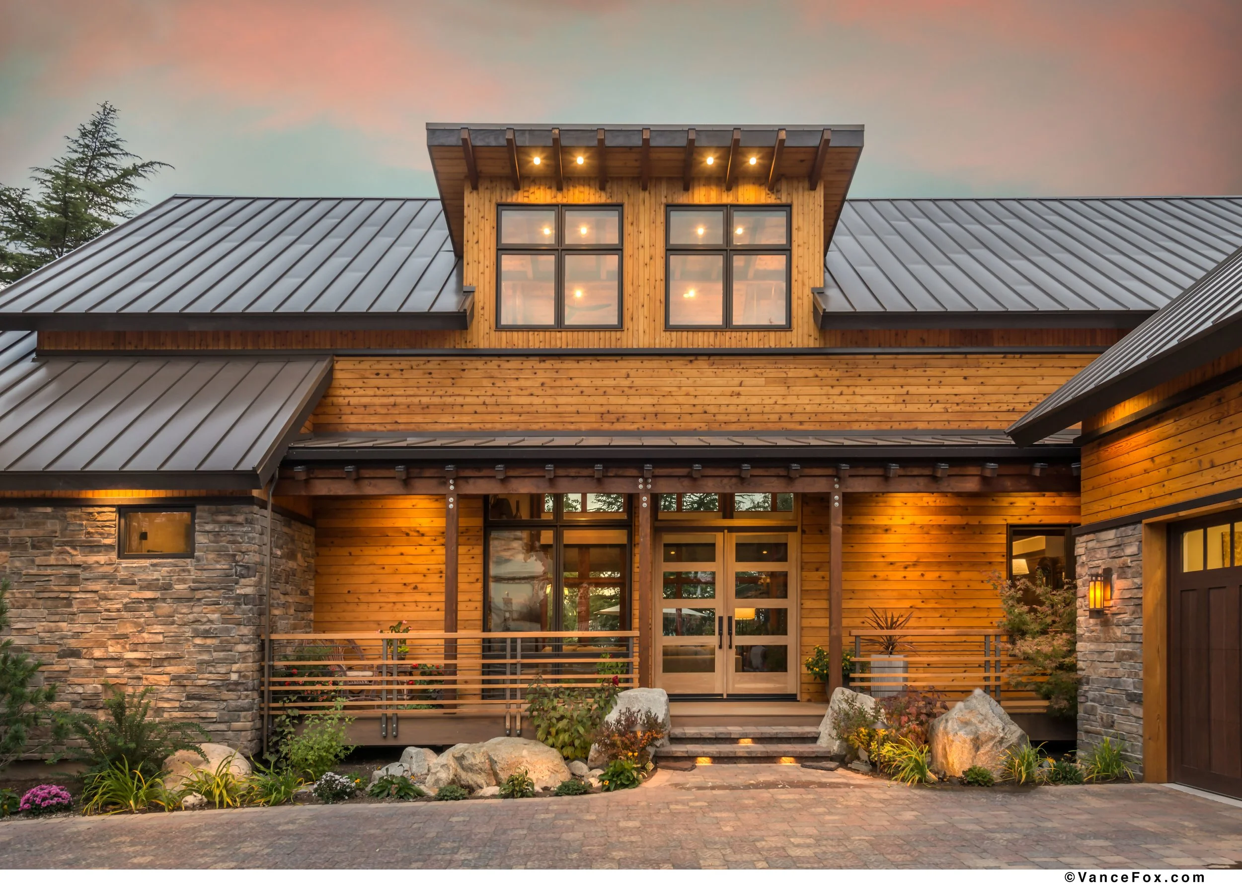 The joy of large family gatherings and the dramatic nature of a grand hall drove the concept of this 4,900 SF home. Inspired by Scandinavian traditions of wood working and celebration of natural light, a custom truss and composite column system was developed to free up the floor space and ‘peel’ open the large gable roof in order to pour light down from above. Exposed framing expressing the structural system is ever present in both interior and exterior spaces.